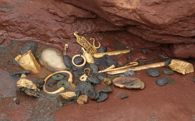 刘志岩表示,首先确认了文物的分布与遗址内河床的起伏状态、基岩局部的微结构以及航道的位置有直接关系。其次,发现了文物原地埋藏的迹象,在基岩河床上发现了多处银锭、金锭以及金块嵌入岩石的情况,可以推断这批文物未经过长距离搬运,这个区域很可能为战争发生地或接近于战争发生地。