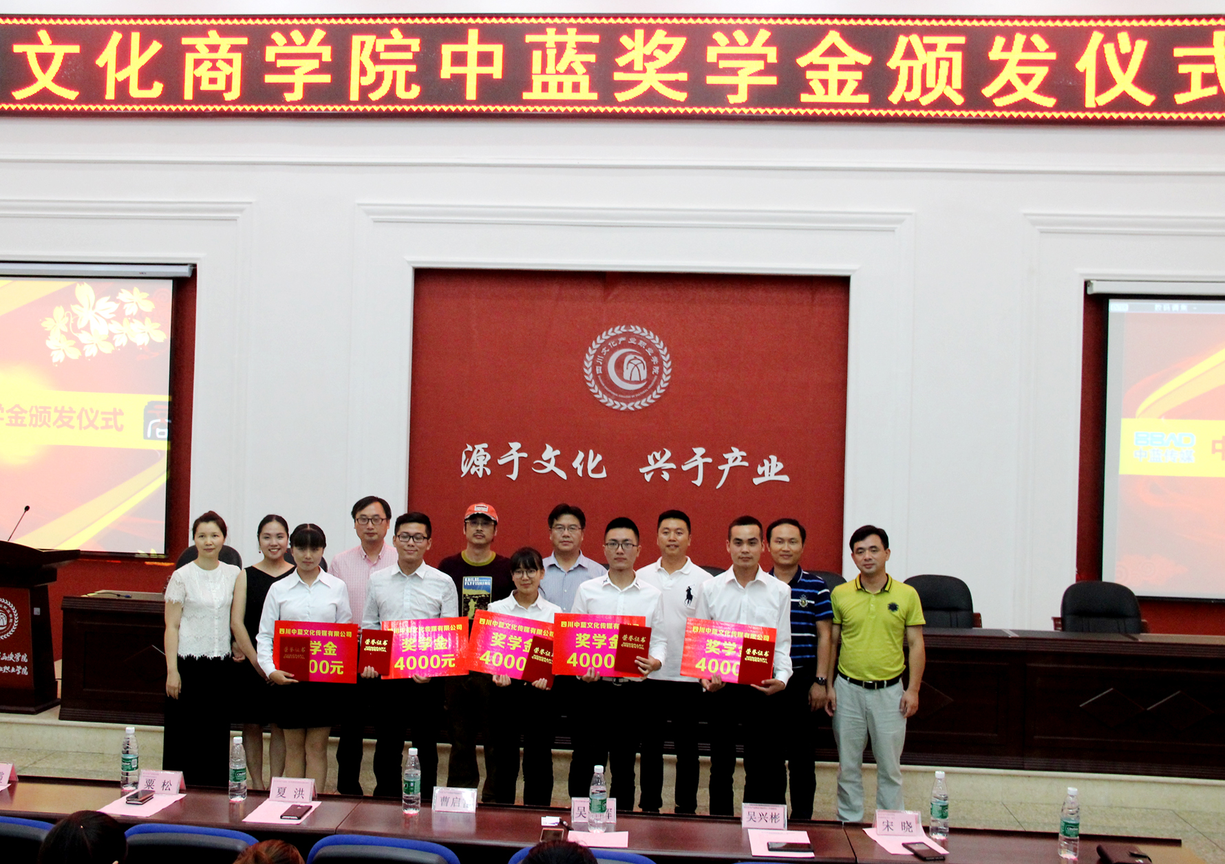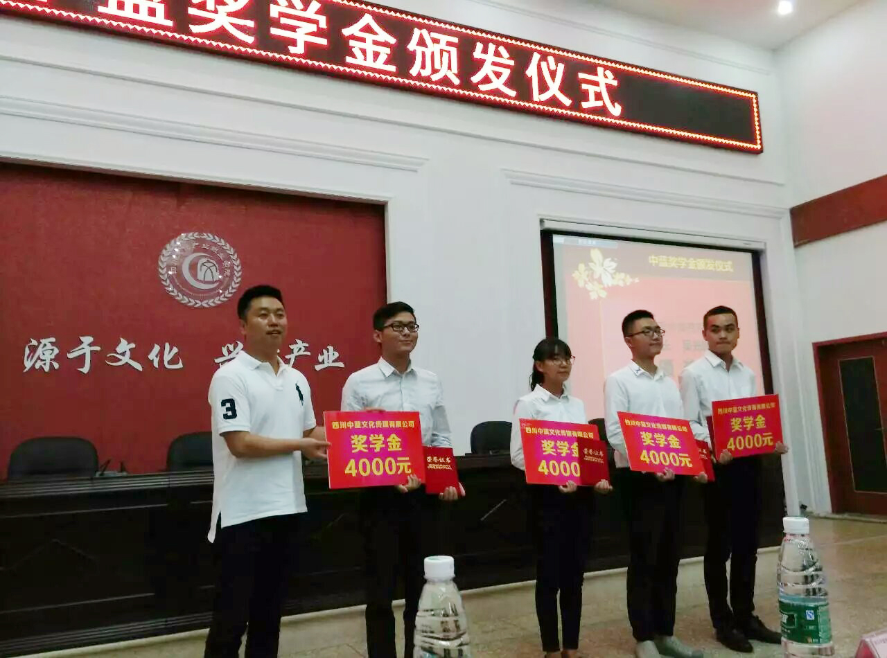 6月23日下午,第一届中蓝奖学金颁奖仪式在四川文化产业职业学院文化商学院举行。四川省文化产业商会常务副会长兼电影专委会会长、四川省民营文化企业协会副会长、四川中蓝文化传媒有限公司董事长吴光辉,四川省文化产业商会、四川民营文化企业协会执行会长夏洪,文产学院副院长曹启富,校学工部、对外交流合作处主要负责人,文化商学院相关人员出席了此次活动。活动由文化商学院党总支副书记邓颖颖主持。