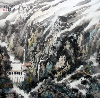 在王少农先生这里,文化与生命都是一个耗散结构,绘画作为一个文化现象,我们要认知这样的系统,必须经过耦合振荡,即时空耗散结构的形成——可以看着是非线性振荡器之间耦合的结果。在某些条件下,由扩散引起的这个耦合,可以使各个振荡器同步并在它们之间保持固定位相关系,即使各个振荡器的内禀周期不同。 如果我们把这样的理论引入绘画和学理,我们就能更好地理解王少农先生夏布青绿山水绘画的传承与创新。就如无论什么东西要成为存在论的课题,现象学总是通达这种东西的方式,总是以指示方式来规定这种东西的方式。现象学的现象概念意指这样的显现者:存在者的存在和这种存在的意义,变式和衍化物。