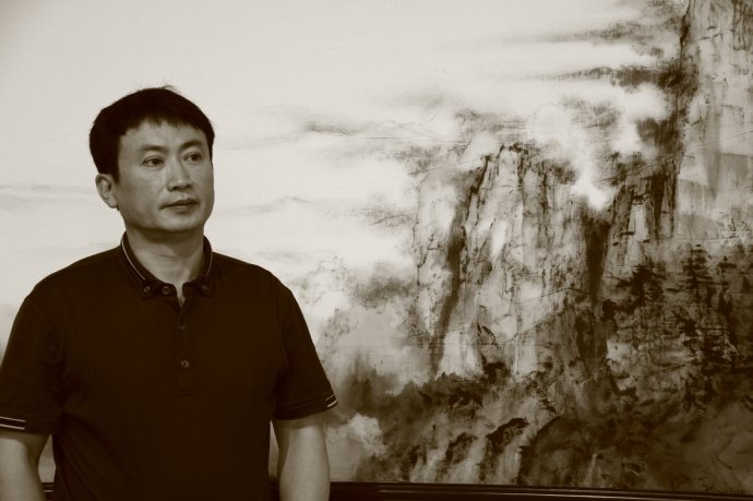 在王少农的工作室,多幅夏布山水画,远看和宣纸为底的国画并无区别。走近了便能看出夏布画独有的肌理。夏布本身的纹理,被巧妙融入创作之中,浸出缥缈的神韵。