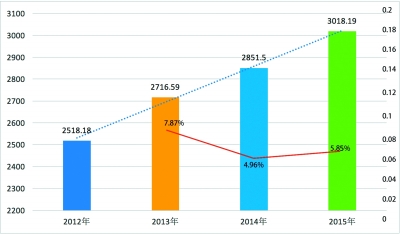 2012—2015年中国音乐产业年度市场规模对比图(单位:亿元)资料图片