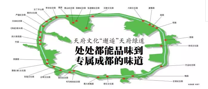“天府绿道的景观、配套设施与重要节点应蕴含天府文化精髓;同时,利用绿道重要节点和配套设施,将推进文创产业发展,遵循产业创意化的原则。”成都天府绿道建设投资有限公司相关负责人说,川派园林特点以寺庙园林与官署园林为主,具有浓厚的自然名胜园林性质,在自然造景中突出强化特有的人文个性,成都的草堂、桂湖、武侯祠都是川派园林的代表。