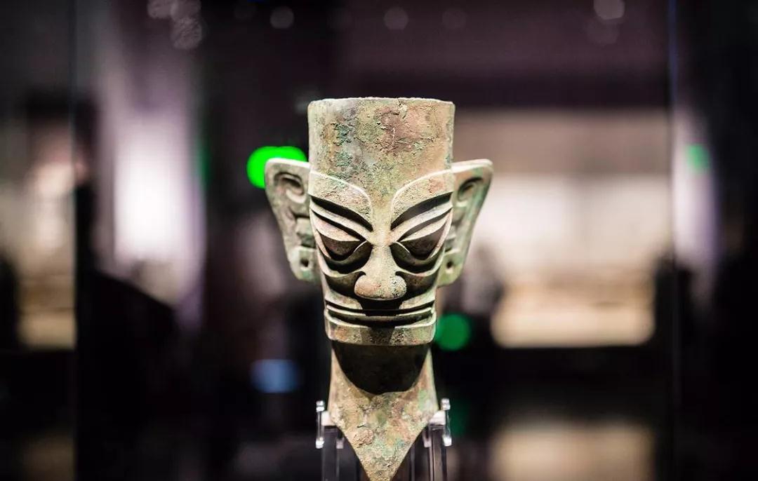 从三星堆看天府文化。天府文化的源头是古蜀文化。茂县营盘山、德阳三星堆、成都金沙古遗址证明,古蜀文明可以延伸到5300年以前。在营盘山遗址发现了新石器时代的房屋基址、墓葬、殉人坑、窑址等各种遗迹。营盘山遗址还出土了不少果核残块,通过浮选之后发现,里面有桃、梅、杏这三种果树的种子,说明早在5300年到4600年前,这里就已经水果丰富。考古人员还发现了一批河蚌、海贝,是“南方丝绸之路”的明证。三星堆距今已有5000至3000年历史,是古城、古国、古蜀文化遗址,它昭示了长江流域与黄河流域一样,同属中华文明的母体,被誉为“长江文明之源”。考古学家将该遗址群的文化遗存分为四期,其中一期为早期堆积,属于新石器时代晚期文化,二至四期则属于青铜文化(下至商末周初),上下延续近2000年。在这批古蜀秘宝中,有高2.62米的青铜大立人、有宽1.38米的青铜面具、更有高达3.95米的青铜神树等,均堪称独一无二的旷世神品。其中有作为“纵目”的蜀人先祖蚕丛偶像的青铜纵目面具,还有长达1.42米、作为权杖法杖的金杖。两座大型商代祭祀坑,出土了金、 铜、玉、石、陶、贝、骨等珍贵文物近千件,最具特色的首推三四百件青铜器。其中,一号坑出土青铜器的种类有人头像、人面像、人面具、跪坐人像、龙形饰、龙柱形器、虎形器、戈、环、戚形方孔璧、龙虎尊、羊尊、瓿、器盖、盘等。二号坑出土的青铜器有大型青铜立人像、跪坐人像、人头像、人面具、兽面具、兽面、神坛、神树、太阳形器、眼形器、眼泡、铜铃、铜挂饰、铜戈、铜戚形方孔璧、鸟、蛇、鸡、怪兽、水牛头、鹿、鲶鱼等。在三星堆的两个祭祀坑发掘中,还出土了共计80多枚象牙。三星堆那些造型各异的青铜人头像,出土时面部均有彩绘,而且在耳垂上穿孔,用以挂戴耳环耳饰。这批前所未有的珍贵文物的发现把古蜀国的文明史向前推进了1500年。