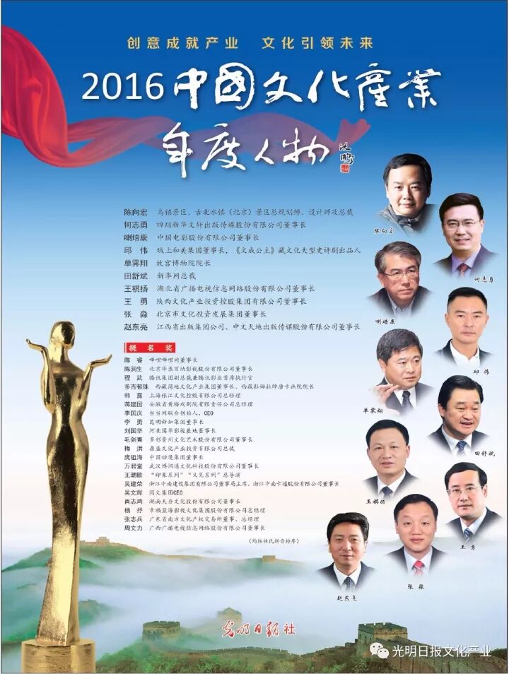 2016“中国文化产业年度人物”为: