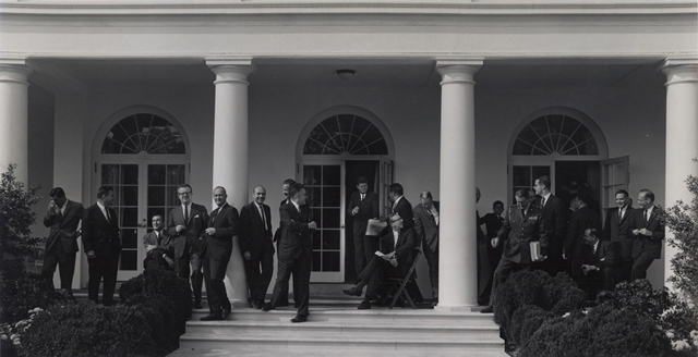 美国总统约翰·肯尼迪和他的顾问团在华盛顿白宫