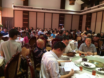 会议主体议程完成后,在《茶山情歌》优美旋律中,副会长陈永宁就天音公司运作的雅奇藏茶“寻找中国合伙人”众筹活动,向大家作了详尽推介,引起参会老总们的兴趣并初步达成部分投资意向。成都同源丝绸文化产业有限公司副总经理谌锦明,也介绍了其文化产业总部大厦楼盘信息及未来打造方向等。